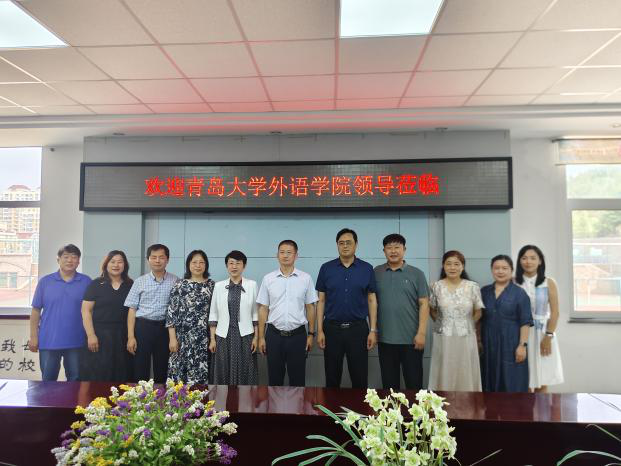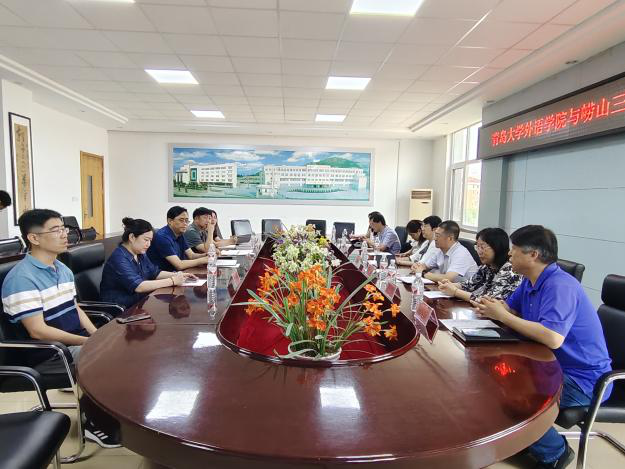 在青岛市崂山区第三中学(Beat365唯一官方网站附属实验学校初中部)调研时,任成志校长和卞建华院长分别介绍了崂山三中和Beat365唯一官方网站办学情况,孙永爱书记和任成志校长对挂职教师英语教育系系主任秦硕谦老师的挂职工作表现给与高度评价。双方就本科生见习项目、教学实践、研究生实习基地的建设以及教研合作项目的开展等议题进行了广泛交流,为未来的合作项目制定了初步的框架。在孙书记和任校长的带领下,外院一行参观了崂山三中校园,体验浓郁的校园文化。