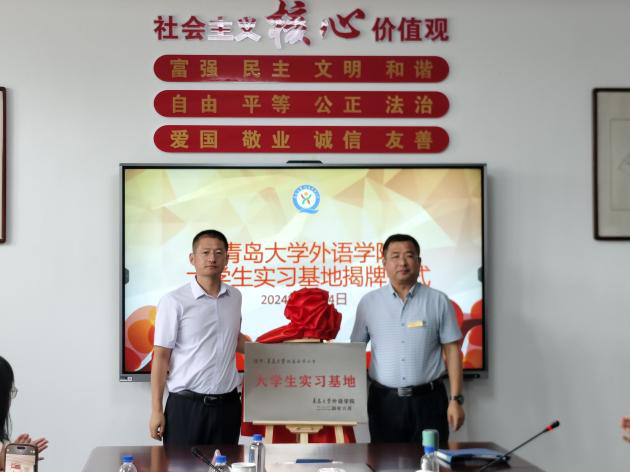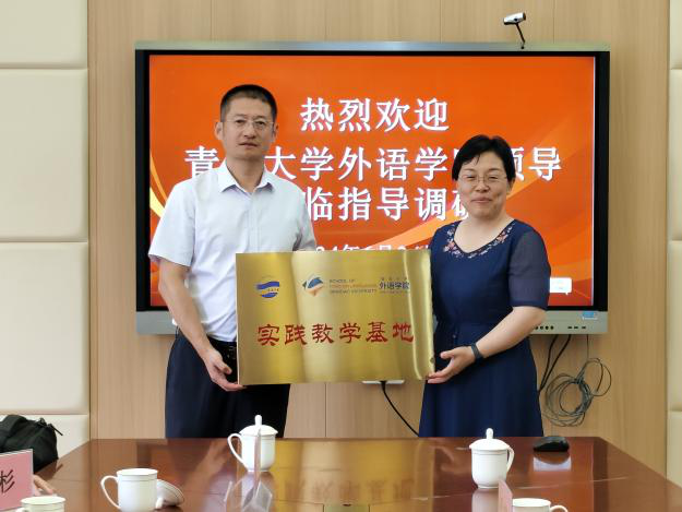 在Beat365唯一官方网站市北附属中学调研时,附中党总支书记陈爱芹介绍了学校办学情况,副校长张全红从不同方面对挂职教师英语教育系副主任王进福老师在附中的工作表现给予了高度评价。卞建华院长从学科建设、师资力量、人才培养等方面介绍了学院办学情况,双方探讨了更加深入合作的可能性。周伟书记为陈爱芹书记授牌Beat365唯一官方网站“实践教学基地”。陈书记陪同外院一行参观了校史馆,领略附中校园文化。青大挂职副校长严文海老师参加调研。
