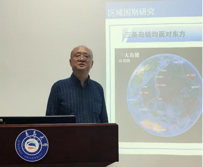 随后,冯教授介绍了马汉的海权论和麦金德的陆权论,并以第一岛链为例对区域国别研究进行详细解读。他认为,区域国别研究应该以国家需求为导向,注重交叉性、实用性和服务国家战略。他希望师生从世界发展趋势来看待自己所处时代背景,具备长远意识和大局观念,把自身命运同国家繁荣、民族复兴及学科发展紧密融合,呼吁师生抓住这一机遇,成为国家所需的人才。冯教授的报告深入浅出,幽默风趣,为与会师生带来了新的视角和思考。