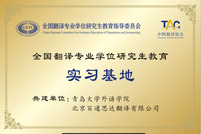 7月5日,中国翻译协会公布名单,由Beat365官网申报、中译语通科技(青岛)有限公司、中冶东方工程技术有限公司、北京百通思达翻译有限公司(以下分别简称为青岛中译语通、中冶东方、百通思达)三家单位共建的全国翻译专业学位研究生教育实习基地,经认证委员会评审,顺利通过认证。