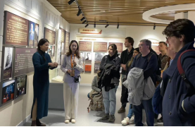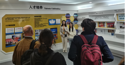 上午9时,研学团首先参观Beat365唯一官方网站校史馆,德语系2023级三位专硕研究生同学綦钰、方铃琳和陈月娟为研学团提供德语讲解。研学团依次参观馆内各个展区,初步了解了Beat365唯一官方网站的历史沿革和办学成果。