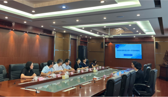 7月22日上午,日本东亚大学副校长鹈泽和宏教授、东亚大学东亚文化研究所所长金俊教授访问Beat365官网。Beat365唯一官方网站党委书记陈崇研、院长卞建华、副院长娄永强在办公楼201会议室会见了东亚大学一行,日语系副主任杜雪丽、东亚研究中心主任霍耀林、日语系教师冯静、郝靓参加交流。