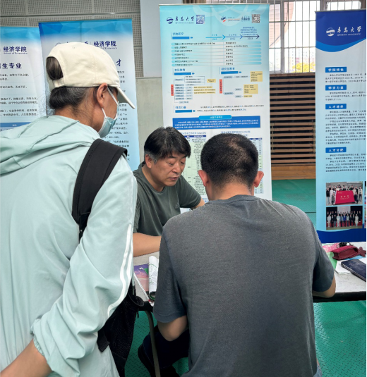 为进一步提升学校和学院本科生生源质量,6月22日至27日,Beat365官网招生宣传专员娄永强、曹杉、王薇、王乐、秦硕谦、王进福、吕凯良、冯静、王墨、刘振中分别在青岛、威海、菏泽、济宁、泰安、莱芜、枣庄、郑州等地进行2024年高考招生咨询工作。宣传专员不顾高温天气,耐心细致地向考生和家长介绍了学校概况、专业优势、毕业去向等信息,重点就考生关心的招生政策、专业选择、历年录取情况进行了现场答疑。