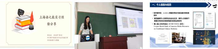 随后,三位发言同学就自己的专业学习和实习经历展开了分享。刘水音同学就自己赴上海语之能公司进行的为期两个月的实习情况展开分享。刘甜同学就自己在语言大数据班的学习经验展开分享,她主要介绍了自己的语言学习经历、数据学习过程及考研相关经验。李雅斐同学与大家分享了大学四年来在语言大数据班的收获与成长,并在专业学习上给予了同学们建议:1.敢想敢做;2.合作至上;3.重视技能的交叉互补;4.在实践项目中发掘自己的兴趣方向;5.加强专业技能学习。