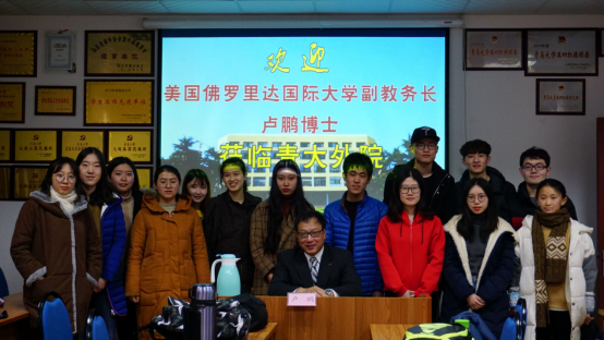 座谈会结束后,卢鹏博士还向中外西班牙语项目的师生进行了专题宣讲会。他介绍了本科学生赴美读研的优势,并通报了FIU正在面向西班牙语本科项目毕业生研究制定的硕士奖学金项目。宣讲会上,在场师生就自己的疑问还向卢博士一一作了求教。不少高年级学生表示赴FIU读研很有吸引力;部分低年级学生也表示一定会认真规划接下来的本科阶段学习,为今后选择出国留学做准备。(拟稿/栾勋业  编审 图/扈炳良)