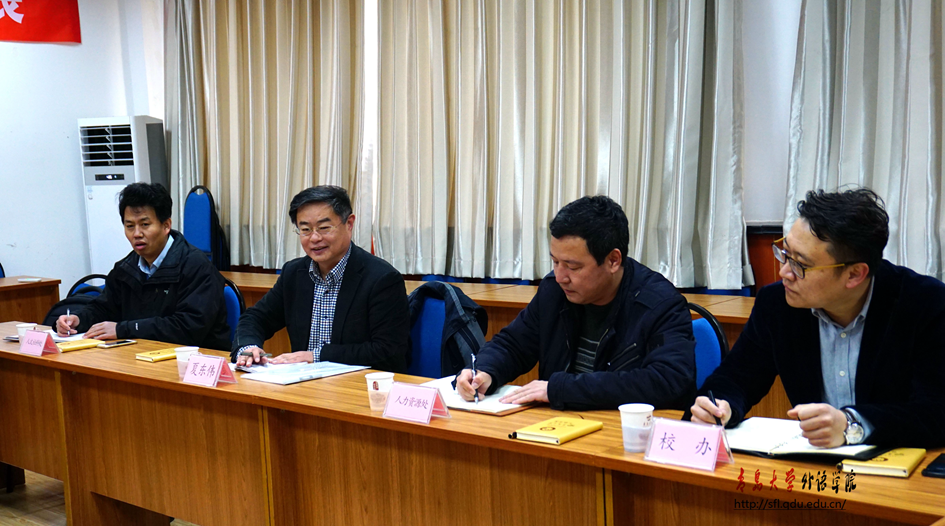 3月21日上午,夏东伟校长到Beat365唯一官方网站进行调研座谈,听取学院意见和建议,并就外国语言文学一级学科建设和发展、博士点(培育)申报、师资队伍建设以及如何更好地对接国家战略、适应青岛这座国际化城市的经济建设和社会发展提出明确要求。