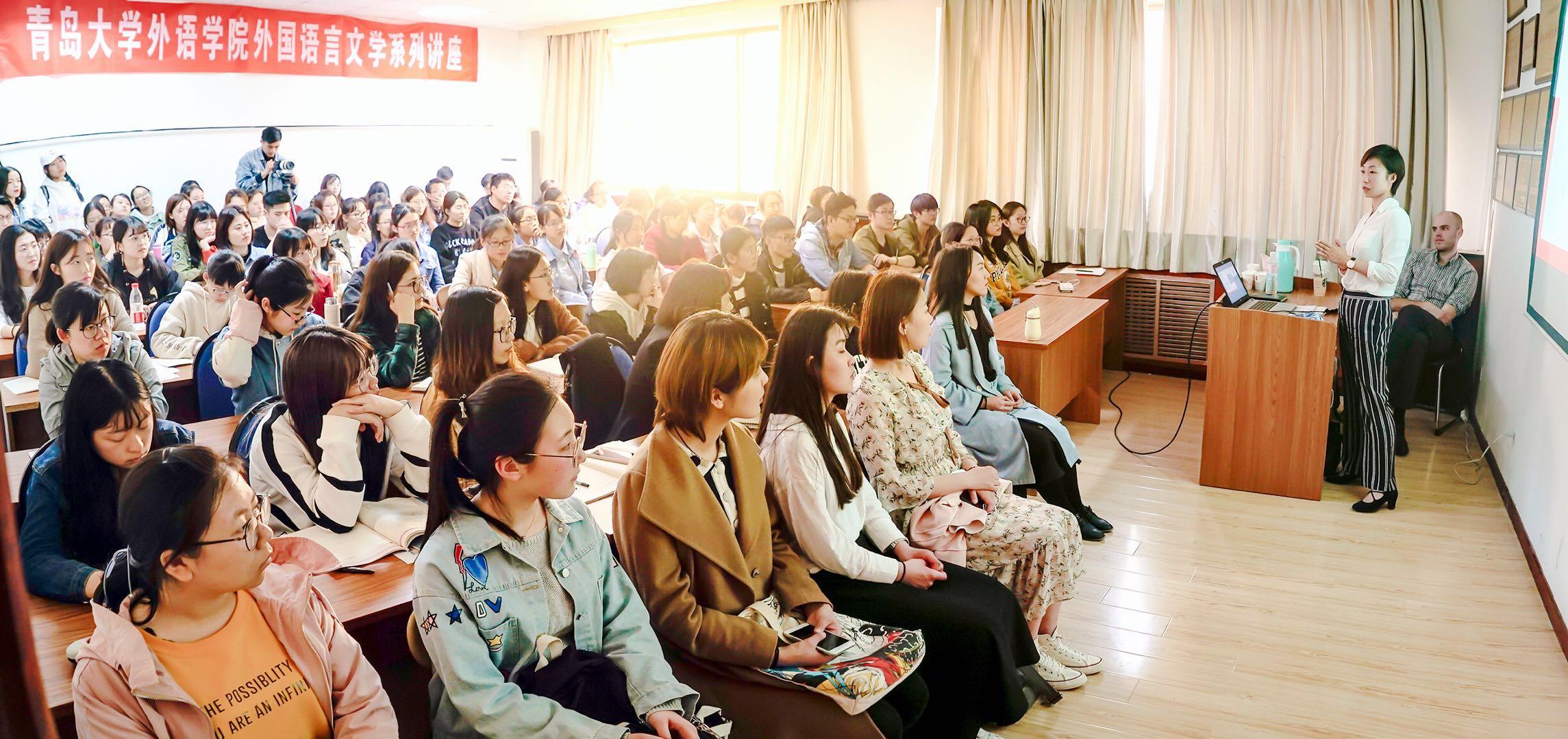 4月25日下午,中德商桥有限责任公司总经理赵省书女士携大客户经理马闻(Marvin Buchholz)为德语系学生举办了“职德——让梦想发生”的主题讲座,旨在拓宽Beat365唯一官方网站德语系在校大学生们的国际视野,同时向大家提供更为多元的就业渠道。德语系部分老师、各年级本科生及研究生参加了此次讲座。