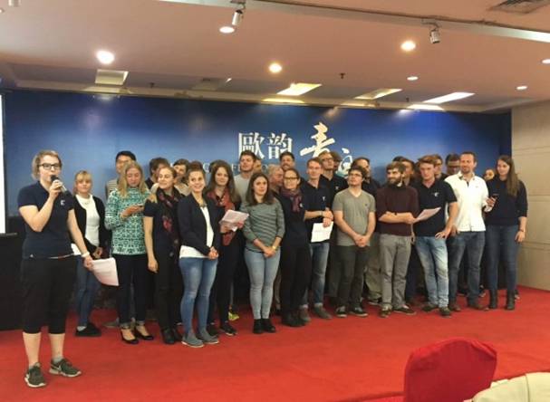 德意志学术交流中心专家、德语教学系外教Detlef Gaertner博士带领德语专业学生,为来访的巴州代表团奉上德语诗朗诵、德语歌曲演唱等节目。巴州精英代表团、德语教学系的同学们还共同演唱了德国著名音乐家贝多芬的经典乐曲“欢乐颂”,将现场气氛推向高潮。最后,中德双方还互赠具有各自文化特色的小纪念,并希望彼此双方在更广泛、更高层次的领域不断建立新的交流与合作。