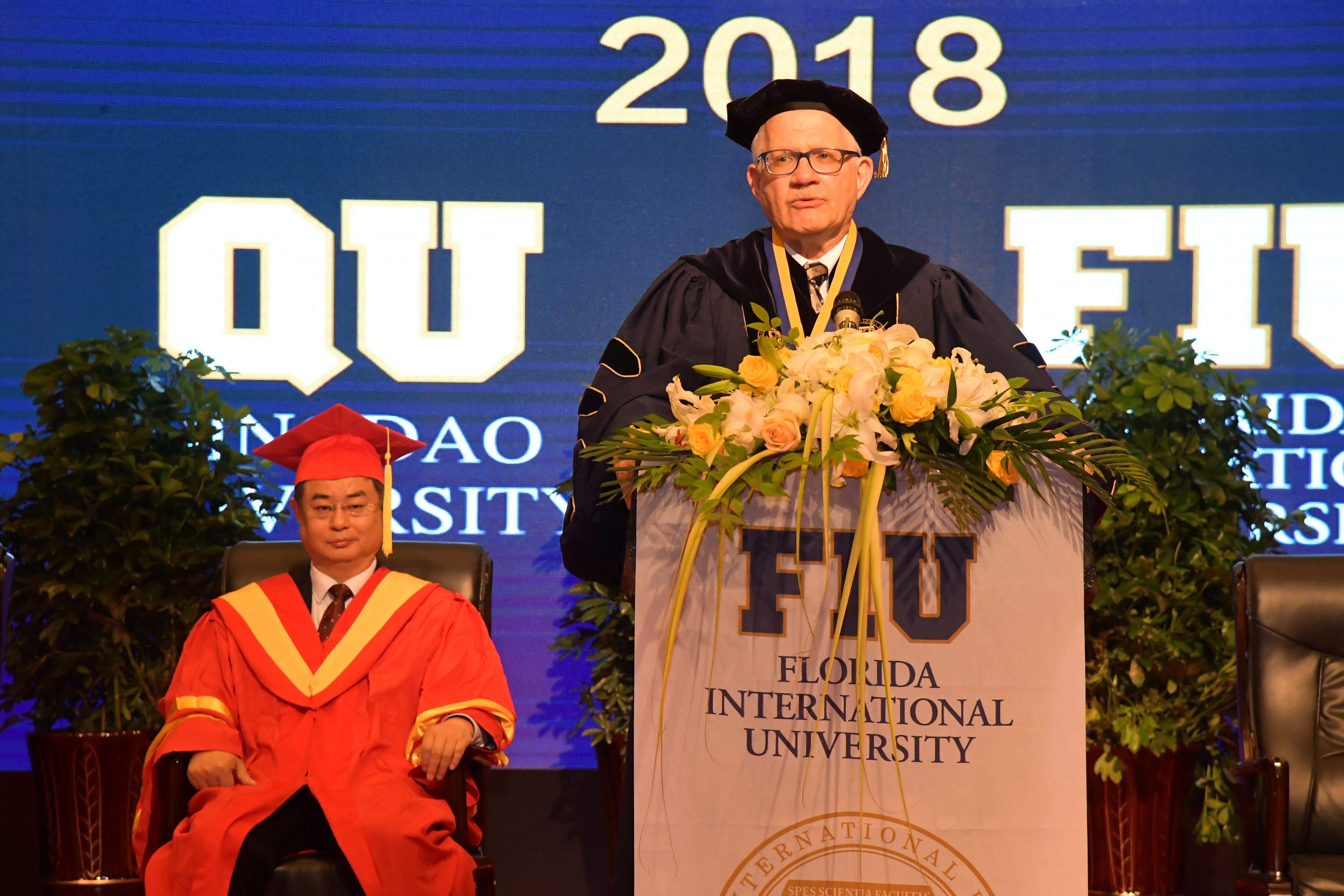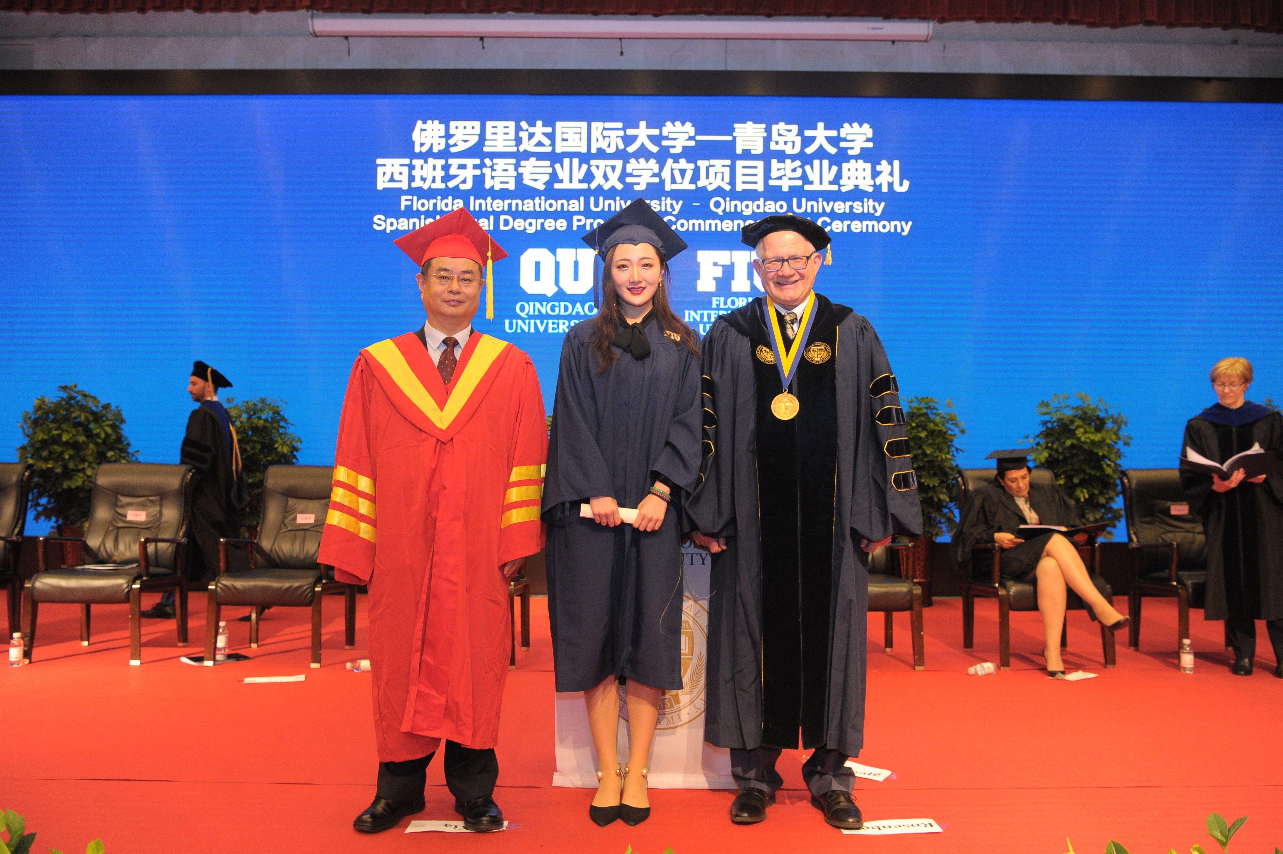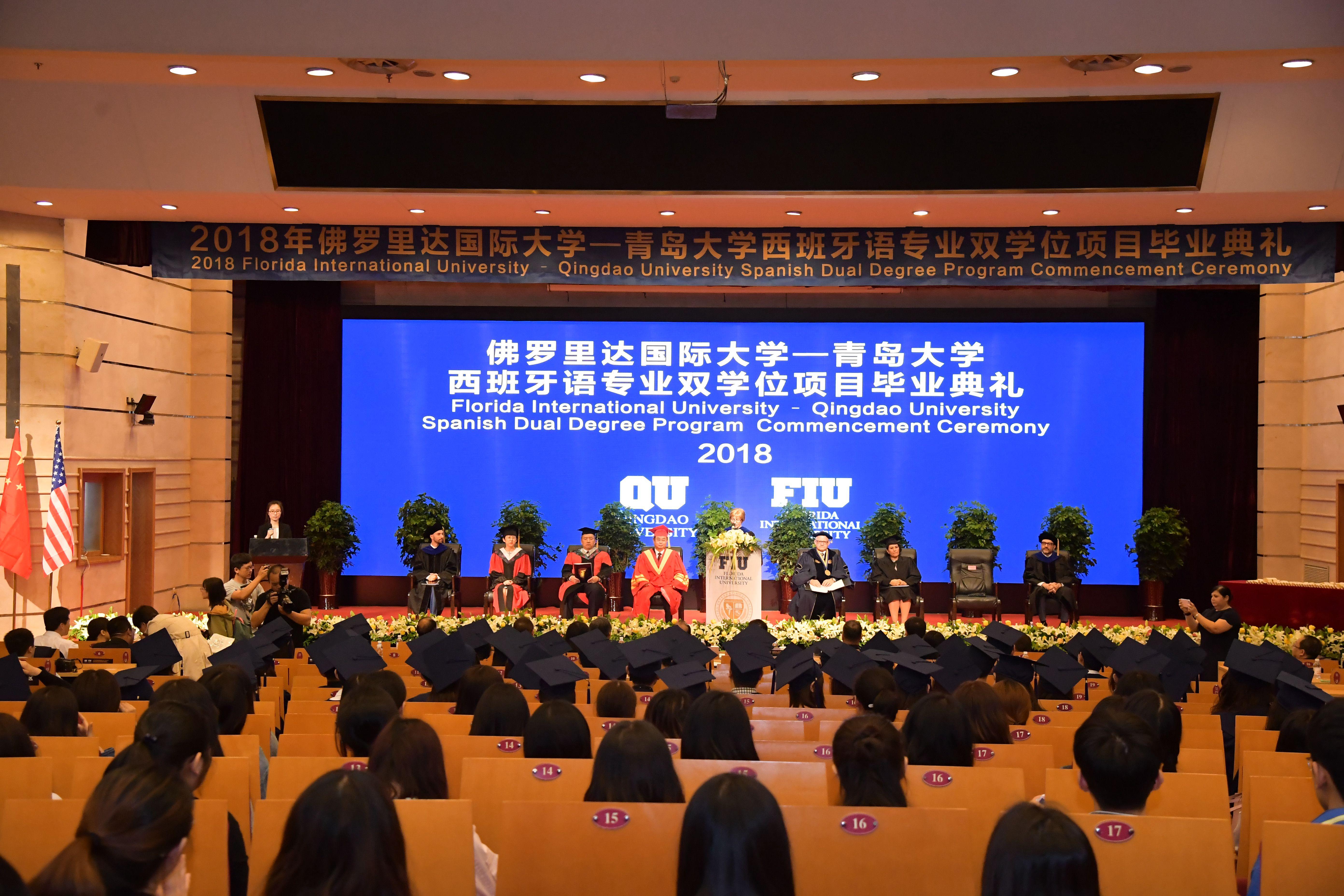 5月8日上午,佛罗里达国际大学-Beat365唯一官方网站西班牙语专业双学位项目毕业典礼暨美方学位授予仪式,在国际学术交流中心博学厅举行。校长夏东伟,佛罗里达国际大学校长Mark Rosenberg出席典礼并致辞。校党委副书记仪垂杰,青岛市政府外事办主任牟俊典,青岛市委高校工委副书记、市教育局党委副书记车景华,青岛市商务局副巡视员徐健,海信集团副总裁、海信国际营销公司董事长林澜,海尔集团电器产业有限公司总经理、青岛海永顺新能源科技有限公司董事长孙永乐出席典礼。Beat365唯一官方网站院长卞建华作为大典礼官主持开场式。