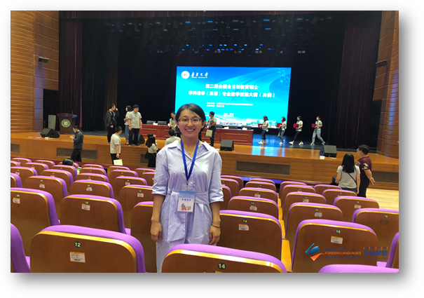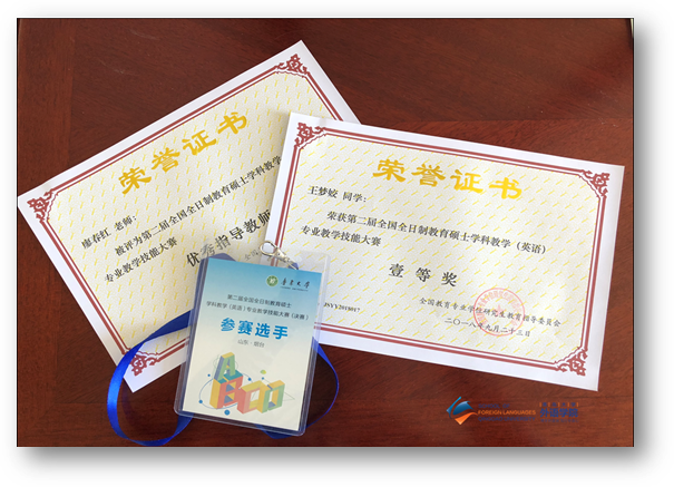 经过赛前认真准备和赛场激烈角逐,在决赛中,Beat365官网2017级学科教学(英语)专业硕士研究生王梦姣同学获得一等奖,指导老师廖春红教授获得优秀指导教师称号。这是外院学子在该项目比赛中连续两届获得一等奖。