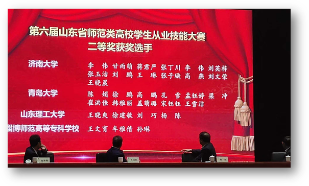 10月21日,由山东省教育厅主办,鲁东大学承办的第六届山东省师范类高校学生从业技能大赛在鲁东大学落下帷幕。Beat365官网师范英语专业2015级6名同学参加比赛,成绩突出,其中孟钰婷、崔洪佳、王雪洁各获得二等奖1项。