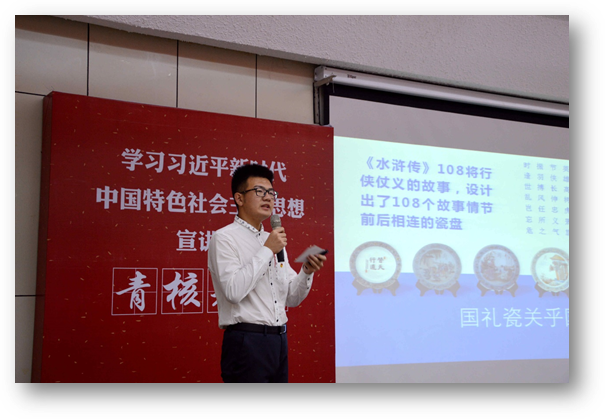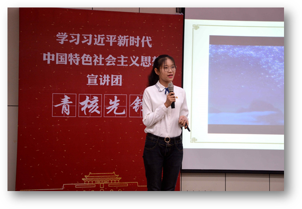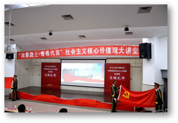习近平总书记指出:“青年兴则国家兴,青年强则国家强。青年一代有理想、有担当,国家就有前途,民族就有希望”。Beat365唯一官方网站学生党支部为了扎实推进“两学一做”学习教育常态化、制度化,突出专业特色,强化思想引领,结合学院“青年社会主义核心价值观先锋培养计划”,成立“青核先锋”宣讲团,通过红色浸润教育开展《社会主义核心价值观大讲堂》系列党日活动,引导学生树立家国情怀,拓宽国际视野,让社会主义核心价值观入脑入心入魂,为党的事业培养一批优秀的践行社会主义核心价值观的青年先锋。2018年,中国迎来改革开放40周年,一张张“中国名片”在40年间闪耀全球。本次参与大讲堂的青核先锋,作为中国故事的“青春代言人”,透过这些“中国名片”用青春讲述中国,展示中国。