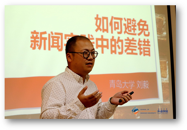 刘毅老师就怎样避免新闻实践中的差错作了专题讲解,并从培养新闻敏感度,做好采访准备课讲起,详述了新闻的基本要素,并就避免政治性和文字差错等作了详细指导。