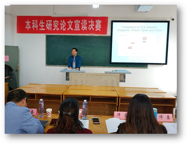 院长助理布占廷副教授作为论文组的评委会主席进行了总结致辞。(法语系李珺)