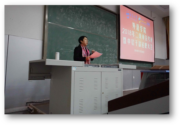 二级单位考评结束后,学院党政班子还就各自主管、分管和教学科研工作进行了公开述职。全体教职工对学院和党政领导班子工作开展情况进行了考评和投票。
