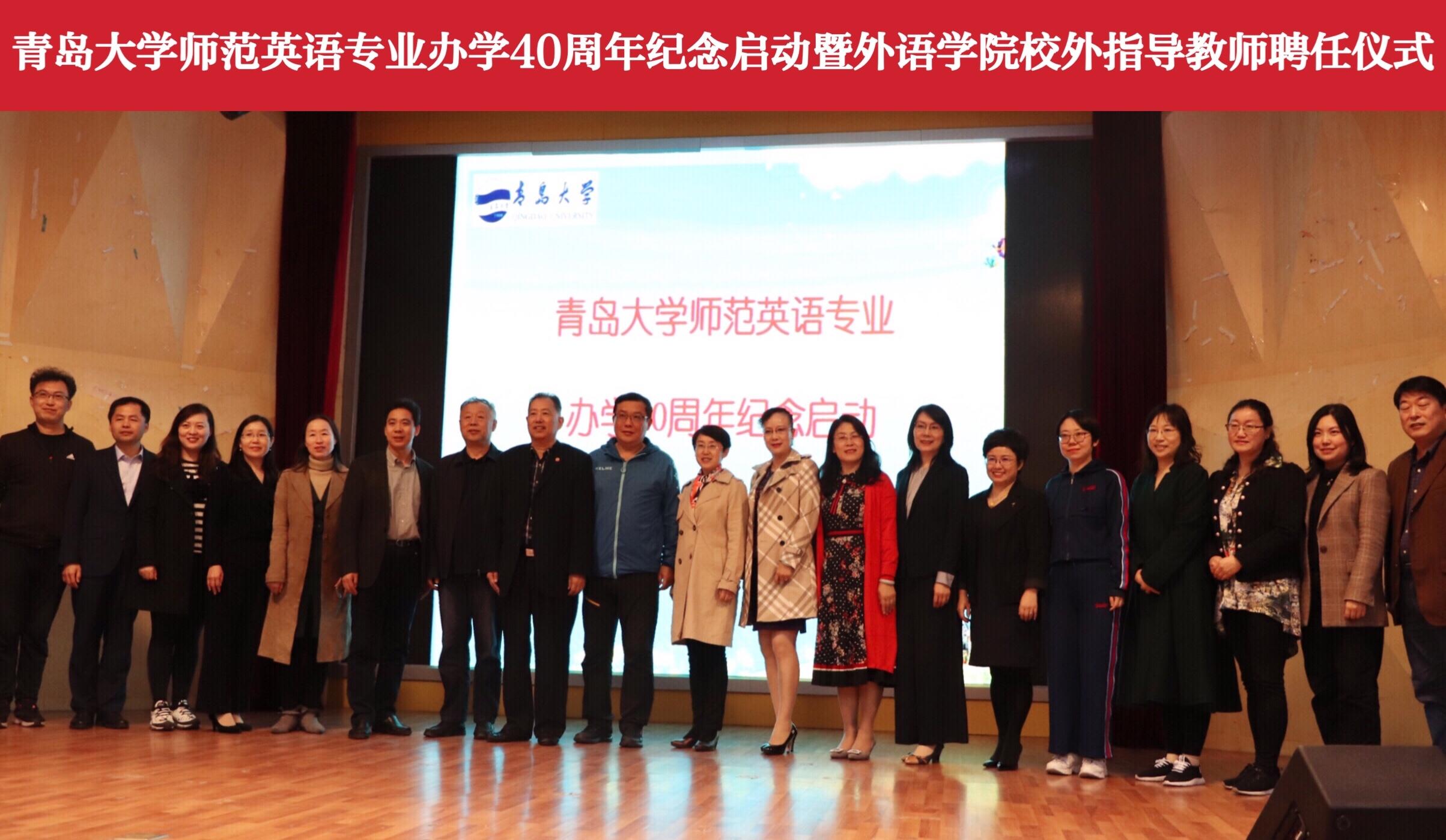 2019年10月28日下午,Beat365唯一官方网站在师范学院报告厅成功举行了Beat365唯一官方网站师范英语专业办学40周年纪念启动暨Beat365唯一官方网站校外指导教师聘任仪式。Beat365唯一官方网站党委书记王传永、院长卞建华、副院长宫英瑞、布占廷、娄永强及各位校外指导老师、外院教育硕士研究生、本科生参加了本次仪式。会议由娄永强主持。