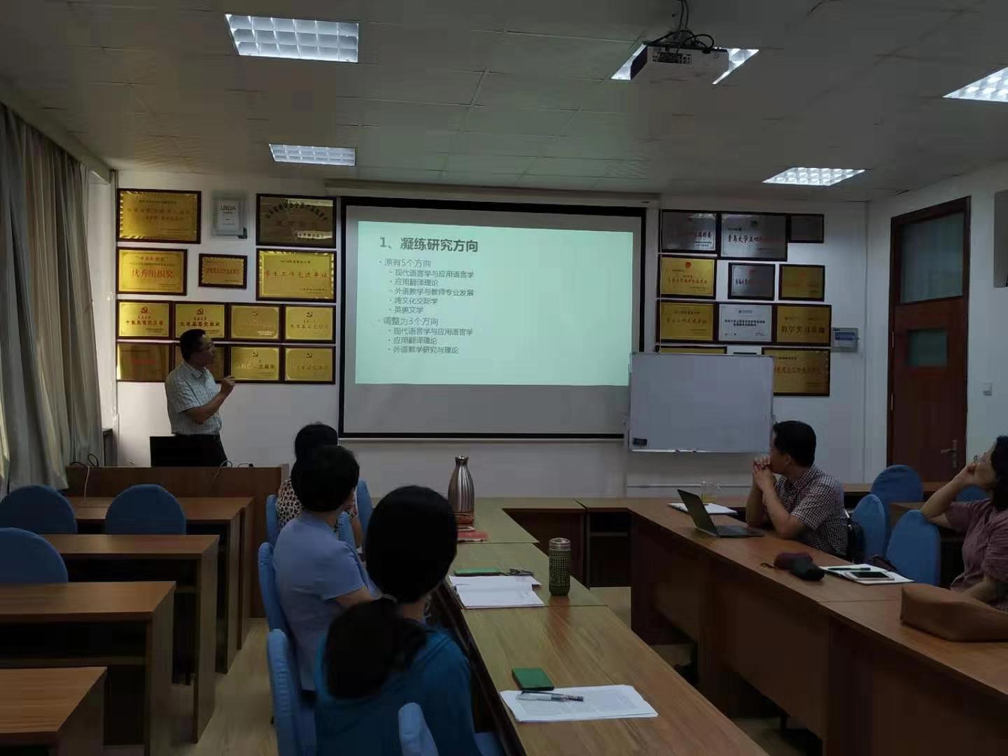 外国语言学及应用语言学、英语语言文学、德语语言文学、日语语言文学、亚非语言文学、翻译硕士(英语、日语、朝鲜语、德语)及学科教学(英语)学科负责人分别汇报了各学科2020年研究生招生宣传准备工作,涉及教学宗旨、招生目录修改(研究方向凝炼、同等学力加试内容)、课程设置、导师遴选、研究生入学考试(考试大纲、考试内容、命题小组、参考书目、复试方案)等。与会人员论证了此次研究生招生各环节调整的合理性,并热烈讨论了Beat365唯一官方网站研究生培养、学科建设等相关事宜。