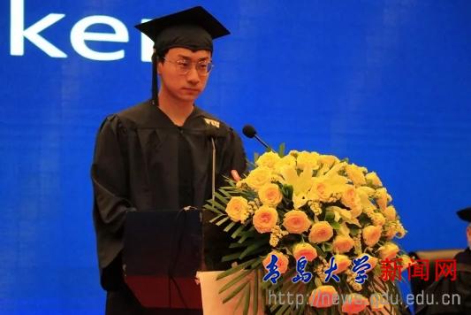 学生代表孙子豪代表发言。他回想了自己FIU课程的学习时光,这些课程使他受益匪浅,如今在老师同学的陪伴下度过了这段难忘的学习过程。毕业之际,他对15级的同学成功毕业表示祝贺,他表示不管将来大家从事什么职业,都希望他们能做好眼前事,也希望在读同学们把握大学时光,继续前行。