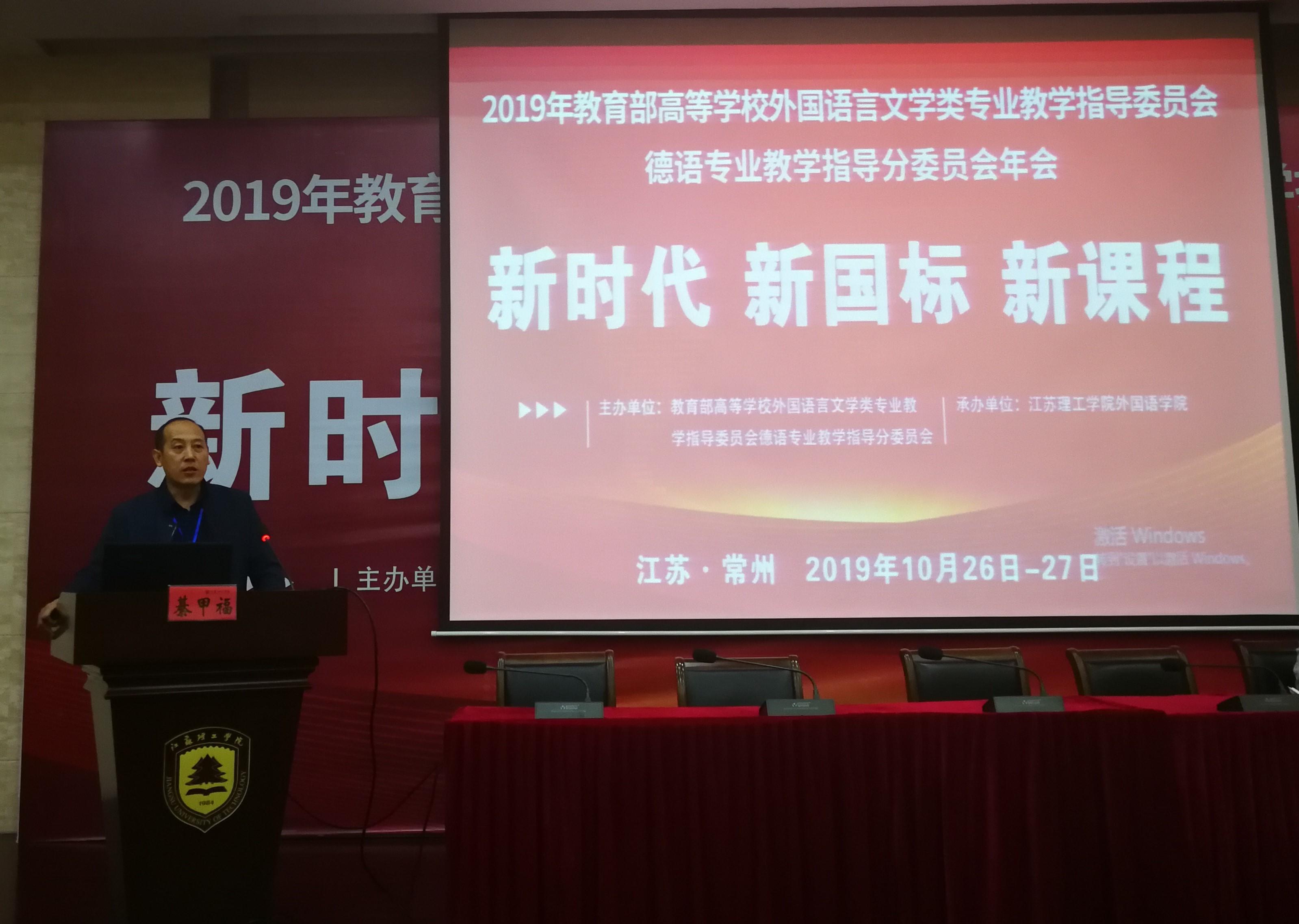 2019年10月25-27日,Beat365官网德语系綦甲福教授参加了由教育部高等学校外国语言文学类专业教学指导委员会德语专业教学指导分委员会(简称:外指委德分委)主办、江苏理工学院外国语学院承办的2019年教育部外指委德分委年会。来自全国近90所高校德语专业的负责人、歌德学院、德国学术交流中心以及出版社的代表近百人齐聚江苏常州,围绕 “新时代、新国标、新课程”的议题各抒己见,共商德语专业发展大计。