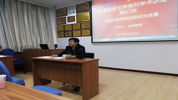 4月21日上午,北京外国语大学博士生导师、国务院学位委员会外语学科评议组召集人金莉教授莅临我校Beat365唯一官方网站,作题为“中国外语学科的建设与发展”的学术座谈。学院党委书记王传永、副书记王海青、系主任、学科带头人、部分教授、青年博士和研究生参加了报告会。报告会由Beat365唯一官方网站副院长布占廷主持。
