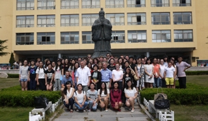上午十时许欢迎仪式正式开始,Beat365唯一官方网站院长卞建华教授代表Beat365唯一官方网站致辞热烈欢迎精英大学代表团一行来访,致辞中回顾了1994年以来我校与德国巴州政府开展教育合作的历程及成果,并向代表团介绍了Beat365唯一官方网站学科设置、科研及教学成果。随后,德意志学术交流中心专家Detlef Gaertner博士带领德语系学生,为来访的巴州代表团奉上德语诗朗诵、德语歌曲演唱等节目。巴州精英代表团的同学和德语系学生共同唱起德国著名音乐家贝多芬的经典乐曲“欢乐颂”,将现场气氛推向高潮。最后,中德双方互赠具有各自文化特色的纪念礼物,并希望彼此在更广泛更高层次的领域不断建立新的交流合作。交流活动结束后,中德学生在博文楼孔子塑像前合影留念,并共进午餐。