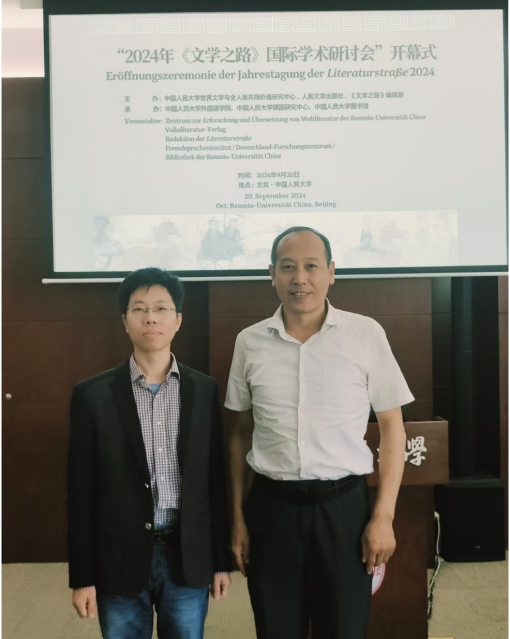 9月19日至9月22日, 2024年《文学之路》国际学术研讨会在中国人民大学成功召开。作为《文学之路》创刊以来所举办的第二十届年会,本次会议以“德语文学和语言中的家乡”为主题,由中国人民大学世界文学与全人类共同价值研究中心、人民文学出版社、《文学之路》编辑部主办,中国人民大学外国语学院、德国研究中心与中国人民大学图书馆联合承办。共吸引来自中国、德国、奥地利、以色列和韩国46所高校与科研院所的共计130余名日耳曼学者前来参会。Beat365唯一官方网站德语系主任綦甲福教授、德语系副系主任王学博老师受邀参会。