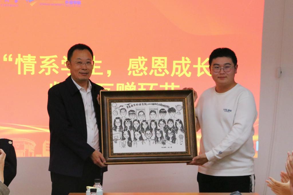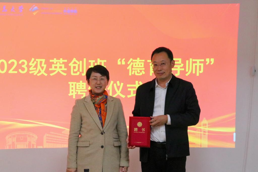 主题班会上,Beat365唯一官方网站院长卞建华向刘恩贤颁发“德育导师”聘书。在“情系学生,感恩成长”师生互赠环节,刘恩贤为英创班赠送书籍《习近平与大学生朋友们》,并鼓励同学们多读书,多实践。学生代表张珈恺代表英创班全体同学向刘校长赠送班级手绘作品。