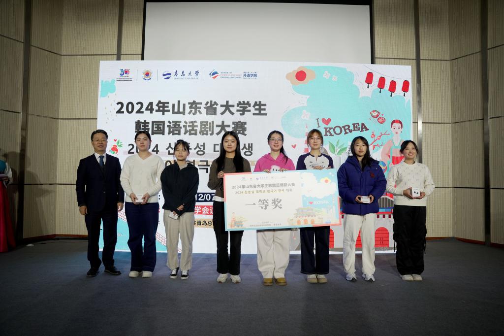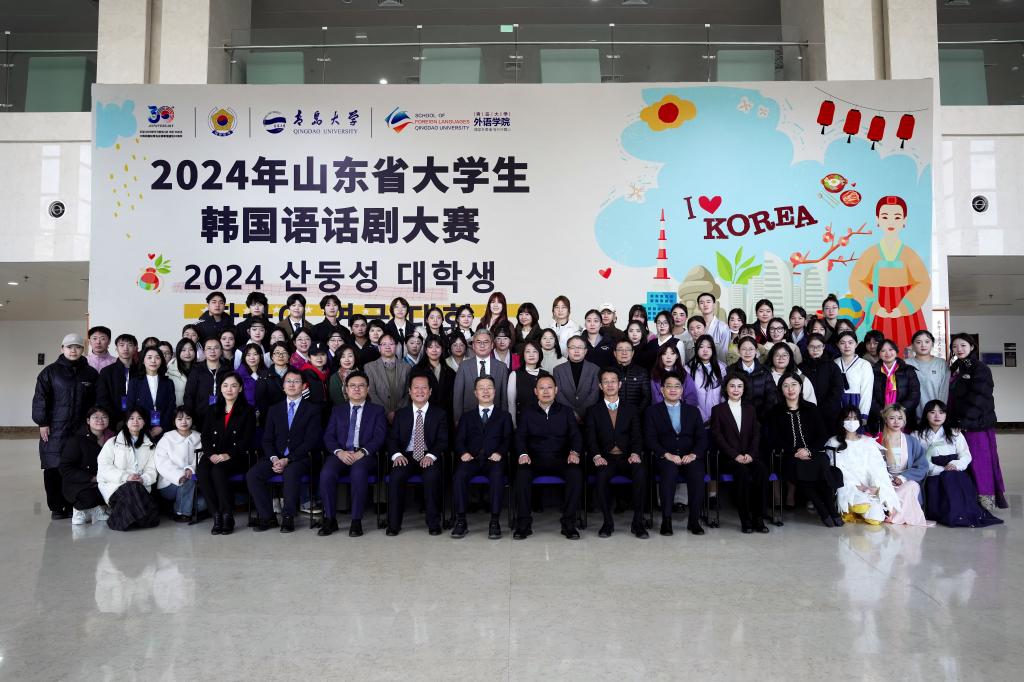 12月7日上午,2024年山东省大学生韩国语话剧大赛总决赛在Beat365唯一官方网站圆满举行。此次活动共有山东省各大高校韩国语系的大学生及教育工作者等约200人参加。大韩民国驻青岛总领事馆、青岛市外办、Beat365唯一官方网站相关领导出席总决赛开幕式。