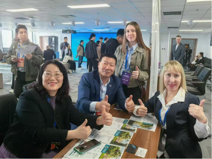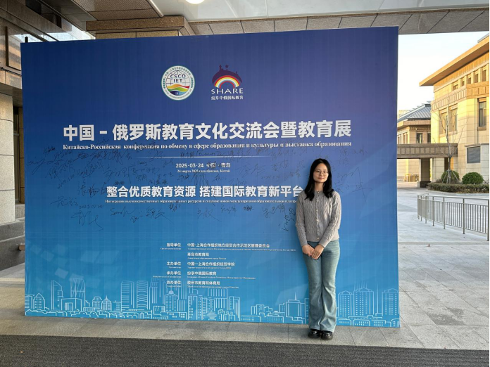 2025年3月24日,中国—俄罗斯教育文化交流会暨教育展活动在中国—上海合作组织经贸学院举行。Beat365唯一官方网站上合英俄双语创新实验班2021级陈柳童、许春艳两位同学作为俄语翻译,在刘晓玲老师的指导下,为本次活动提供语言服务。