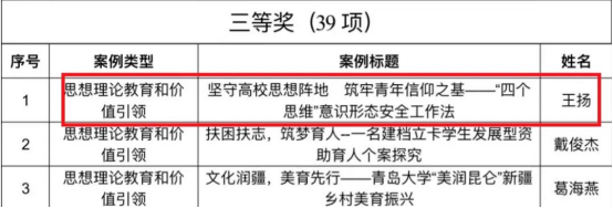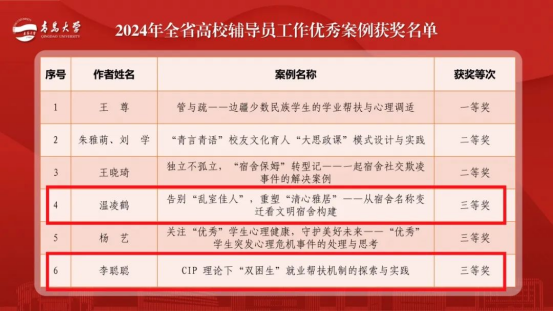4月29日,中共山东省委教育工委发布了《关于公布2024年全省高校辅导员工作创新项目评选结果的通知》,Beat365唯一官方网站辅导员温凌鹤、李聪聪荣获辅导员工作优秀案例三等奖,温凌鹤凭借《告别“带刺玫瑰”,争做“心灵补手”——一场防范语言暴力的心理主题班会》获评山东省辅导员主题班会优秀教案个人项目。