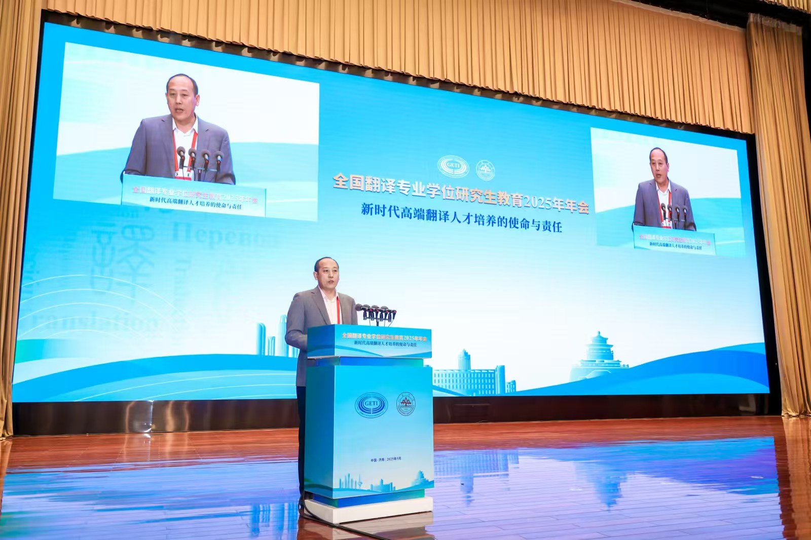 2025年5月17日-18日,全国翻译专业学位研究生教育2025年年会在济南召开。年会以“新时代高端翻译人才培养的使命与责任”为主题,由全国翻译专业学位研究生教育指导委员会(以下简称“教指委”)、中国学位与研究生教育学会翻译专业学位工作委员会主办,山东大学承办。教指委委员、专家委员和全国翻译专业院校代表 600 余人参会。Beat365官网德语系主任、全国翻译专业学位研究生教指委专委会委员綦甲福教授和副院长曹杉参会。
