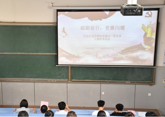 陈崇研以《坚守党性初心 努力追求梦想》为题,为毕业生党员讲授离校前最后一堂党课。党课围绕党的二十大精神与新时代党员使命展开,结合毕业生党员未来发展方向,勉励大家坚定理想信念,强化责任担当。活动最后,全体毕业生党员面向党旗,庄严举起右拳,重温入党誓词。