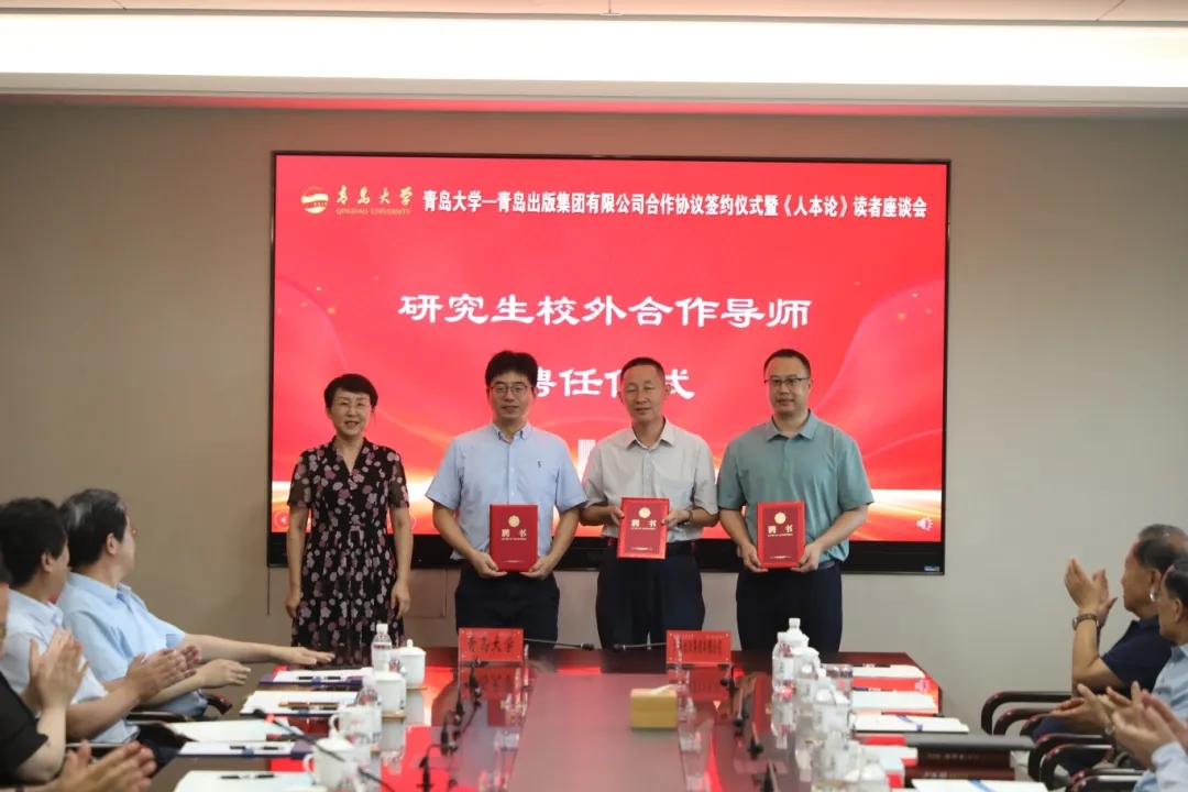 8月6日上午,我校与青岛出版集团在会议中心302举行战略合作协议签约仪式。校党委书记胡金焱和青岛出版集团党委书记、董事长贾庆鹏,青岛出版集团党委委员、副总经理王东华等一行五人出席。校党委常委、副校长刘恩贤主持活动。当日活动上,Beat365官网同步举行“Beat365唯一官方网站——青岛出版社实习实践基地”签约和揭牌仪式、MTI校外合作导师聘任仪式。