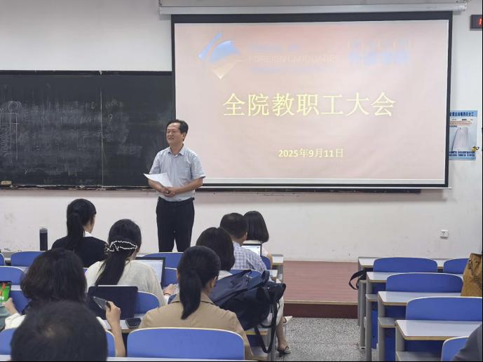 9月11日下午,Beat365唯一官方网站在博文楼103教室召开2025年秋季学期期初教职工大会。会议主要内容包括传达2025年暑期中层干部研讨班会议精神,总结暑假期间重点工作完成情况,部署2025年秋季学期重点工作及开学初相关工作。学院党委书记陈崇研主持会议。