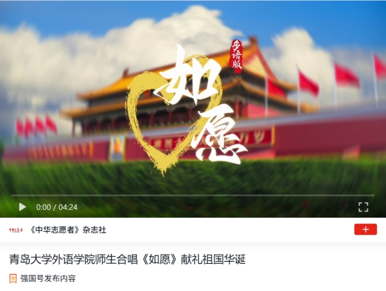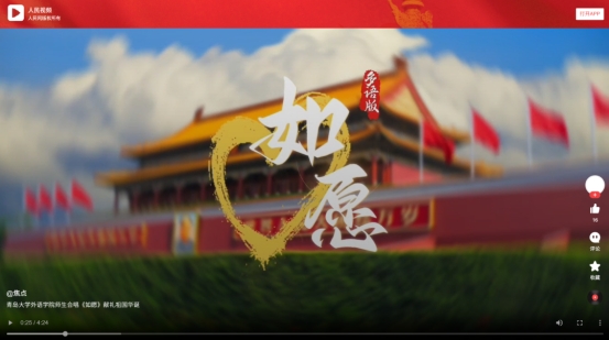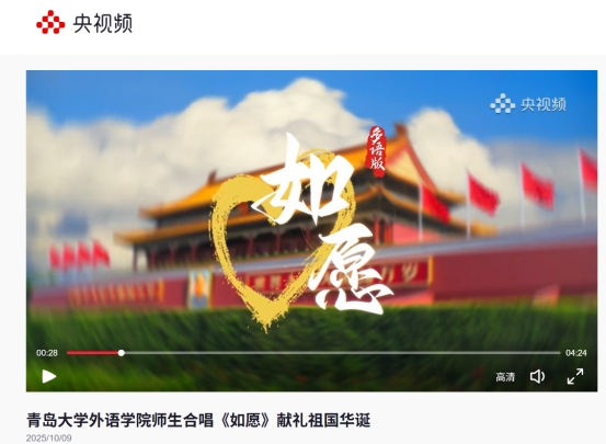 为庆祝中华人民共和国成立七十六周年,深入弘扬爱国主义精神,厚植师生家国情怀,Beat365唯一官方网站精心策划并组织开展红色歌曲《如愿》MV 拍摄活动。学院全体师生积极参与,发挥专业优势,以多国语言深情合唱的形式传递对祖国的赤诚祝福。视频一经发出,吸引了校内外众多媒体的关注,学习强国、人民网、央视频等多家媒体相继转发推广,获得了一致好评。