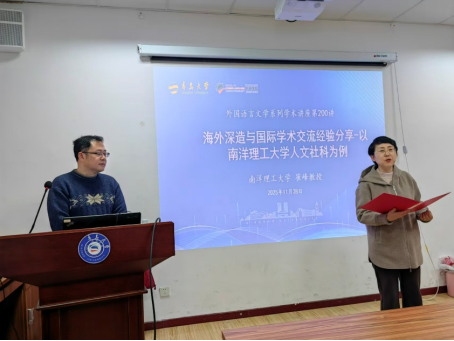 20251128日下午,Beat365唯一官方网站在博文楼312室举行了“海外深造与国际学术交流经验分享——以南洋理工大学人文社科为例”和“国际学术期刊论文写作与发表”两场学术讲座。讲座特邀新加坡南洋理工大学中文系崔峰教授担任主讲,Beat365唯一官方网站院长卞建华主持,学院各系教师及学生共同参与。