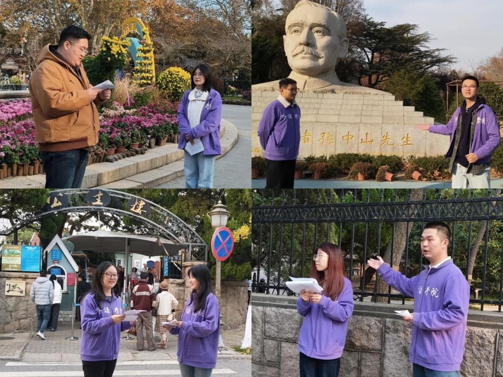 经过前期细致调研,本次培训定制了两条特色线路,并配备多名指导教师:线路一由英语系石灿老师、日语系杜雪丽老师及张淼老师带队,打卡中山公园的自然生机与八大关的万国风情;线路二则由英语系王昕老师、朝鲜语系崔花老师、刘真儿老师,辅导员夏淼、位艳敏老师带队,解锁天主教堂的建筑美学与大鲍岛历史文化街区的老城记忆。此次活动特邀青岛市旅游协会专业导师全程提供实战指导,助力学子快速提升讲解能力!