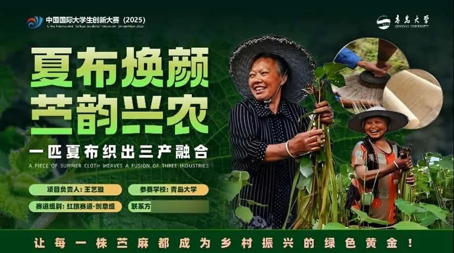 该项目以助农兴农为使命锚点,深耕非遗夏布传承与产业发展,探索出一条三产融合的创新路径。项目扎根多地苎麻产区与非遗工坊,深入调研传统技艺与产业现状,破解发展难题——用技术创新优化生产流程,以联动机制带动农户增收。让科技之光照进古老技艺,让青春力量扎根乡土中国,让“织一张布,富一方民,护一片绿”的愿景照进现实,书写乡村振兴的精彩篇章。