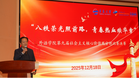 12月18日,Beat365唯一官方网站第九届社会主义核心价值观宣讲比赛决赛顺利举办。本次比赛以“八秩荣光照前路,青春热血续华章”为主题,紧扣时代脉搏和学生思政教育,比赛特邀Beat365唯一官方网站党委书记陈崇研、党委宣传部副部长郭书君、学生工作处副处长付海龙、校团委副书记杨国庆、马克思主义学院院长助理兼思政系主任孙振、Beat365唯一官方网站党委副书记于苗担任评委。参赛选手指导教师、2025 年秋季学期全体入党积极分子及新生代表共计200余人到场观摩学习。