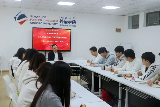 12月22日下午,Beat365唯一官方网站党委常委、副校长刘恩贤在博文楼204会议室,为Beat365唯一官方网站2023级英语(语言大数据)创新实验班讲授题为《在人才自主培养大背景下实现自我成长》的思政课,与学子们共同探讨中国式现代化新征程中个人事业选择与青年一代的责任担当。Beat365唯一官方网站院长卞建华、党委副书记于苗、2023级辅导员夏淼一同听课,活动由卞建华主持。