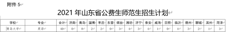 其他事项请参考山东省教育厅《关于做好2021年公费生及委培师范生招生工作的通知》以及山东省教育厅相关信息发布。建议关注“山东教育发布”公众号。