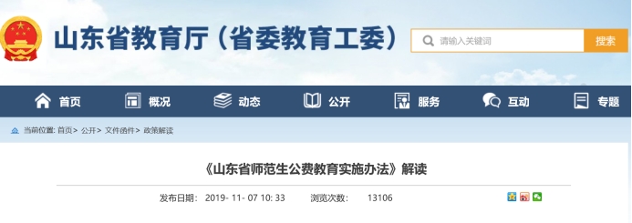 相关文件:《山东省师范生公费教育实施办法》、《<山东省师范生公费教育实施办法>解读》