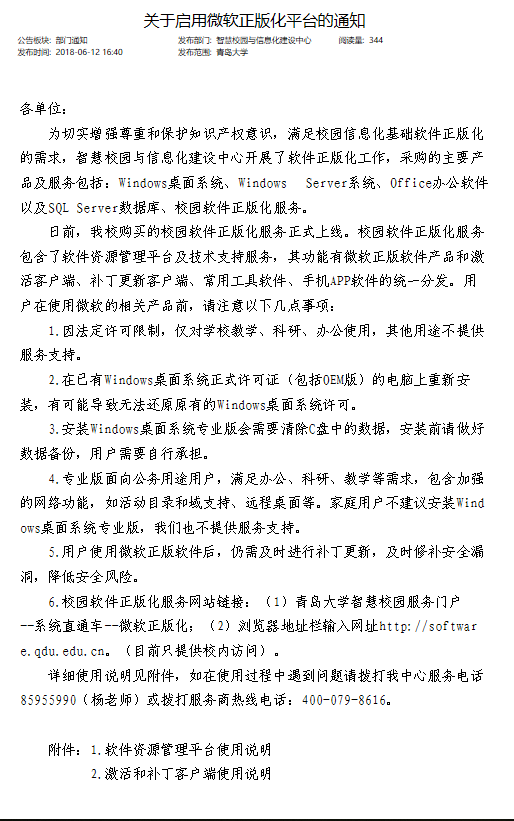 关于学校启用微软正版化平台的通知