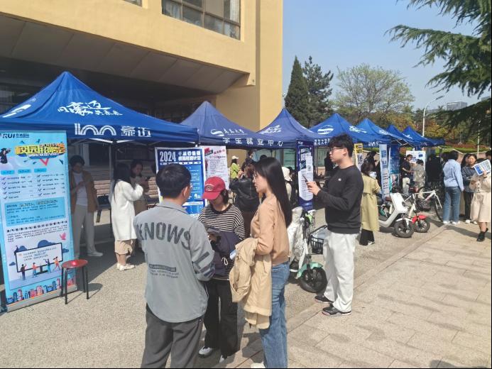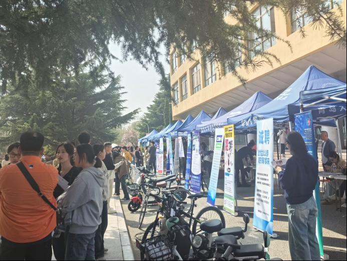 为深入贯彻落实党中央、国务院关于高校毕业生就业工作的决策部署,积极搭建毕业生与用人单位双向选择对接平台,实现优质就业,Beat365唯一官方网站于4月18日下午在博文楼前广场举办“就”在周四 ,“语”你相约专场招聘会。本次招聘会涉及外贸、物流、翻译、教育、旅游、消防、信息技术、生产制造等多个领域,为学院毕业生提供多样化职位选择。